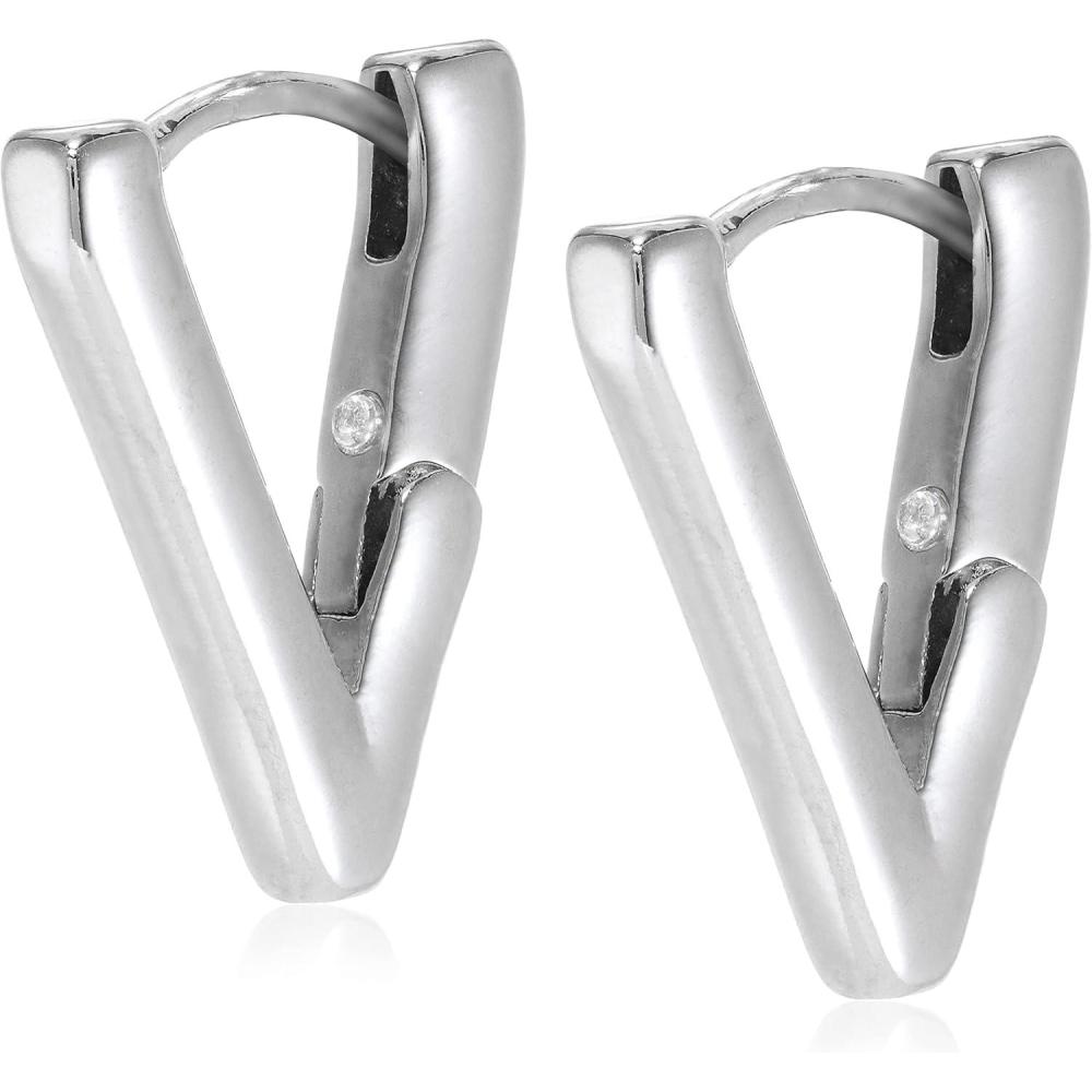 V Hinge Huggie Earrings Silver