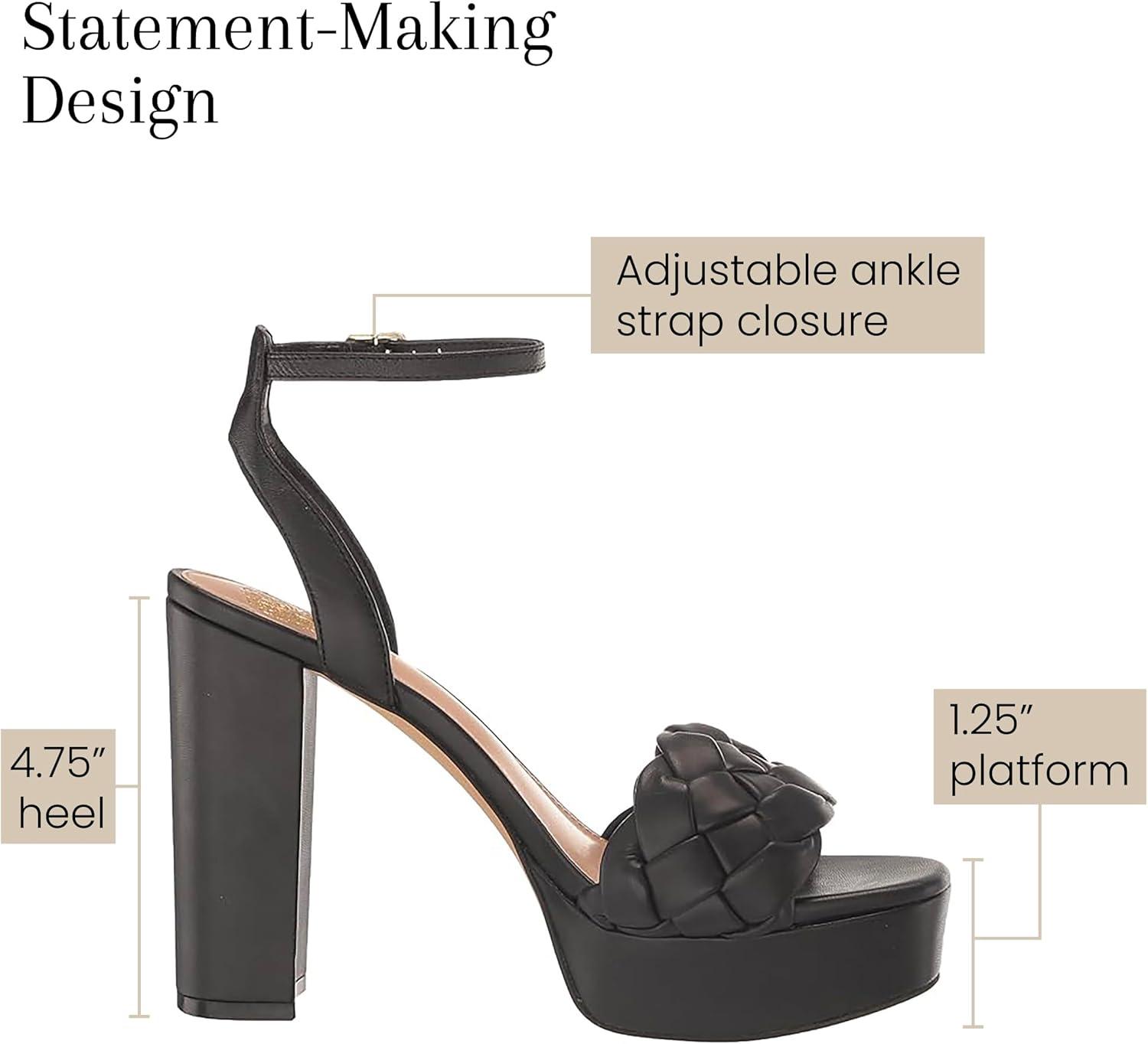 Step up your style game with the Vince Camuto Women's Mirinda Woven Sandal Platform Heels for women—your go-to for flirty fun and chic sophistication! Whether you're after the perfect wedding guest heels or bold homecoming heels, these woven beauties bring just the right amount of wow factor. Comfort meets cool with these chunky sandals for women. The cushioned footbed and adjustable ankle strap make sure you stay comfy all day (and night!) long, while the 1.25″ platform and 4.75″ block heel give you that extra lift—without missing a beat. Ready to make a statement? These platform shoes pack a punch with their eye-catching woven design and sleek, modern silhouette. They're the perfect balance of trendy and timeless, giving you all the attention wherever you go. From breezy summer days to crisp autumn outings, these platform sandals women dressy are your versatile, season-spanning style must-have. Pair them with everything from dresses to jeans for effortless glam all year long. With Vince Camuto, you're not just stepping into a shoe—you're stepping into luxury. Known for high-quality design and craftsmanship, these sandals are your new wardrobe showstoppers!